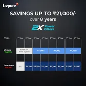 Livpure is an Indian water purification and wellness brand known for providing technology-driven and health-focused water solutions. Founded in 2012, the company offers a wide range of RO, UV, and UF water purifiers designed to tackle diverse water conditions across Indian households. In addition to purifiers, Livpure has expanded into smart subscription models and rental services, making clean drinking water more accessible and convenient. The brand stands out for its emphasis on innovation, affordability, and user convenience. Many Livpure products include features such as mineral enhancement, smart indicators, and compact designs suited for modern homes. With a growing service network and a focus on delivering reliable purification performance, Livpure has positioned itself as a competitive choice for consumers seeking efficient and practical water treatment solutions.